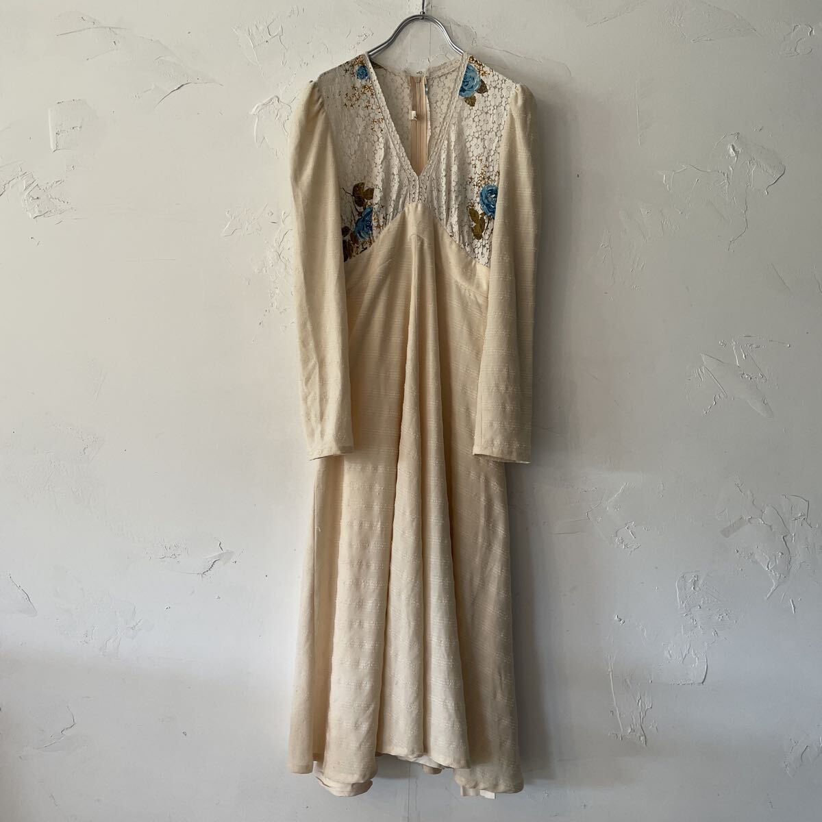 > ビンテージ ヨーロッパ古着 レース ロングワンピース 5ヴィンテージ ユーロ 花柄 シアー ドレス 70s 80s アンティーク