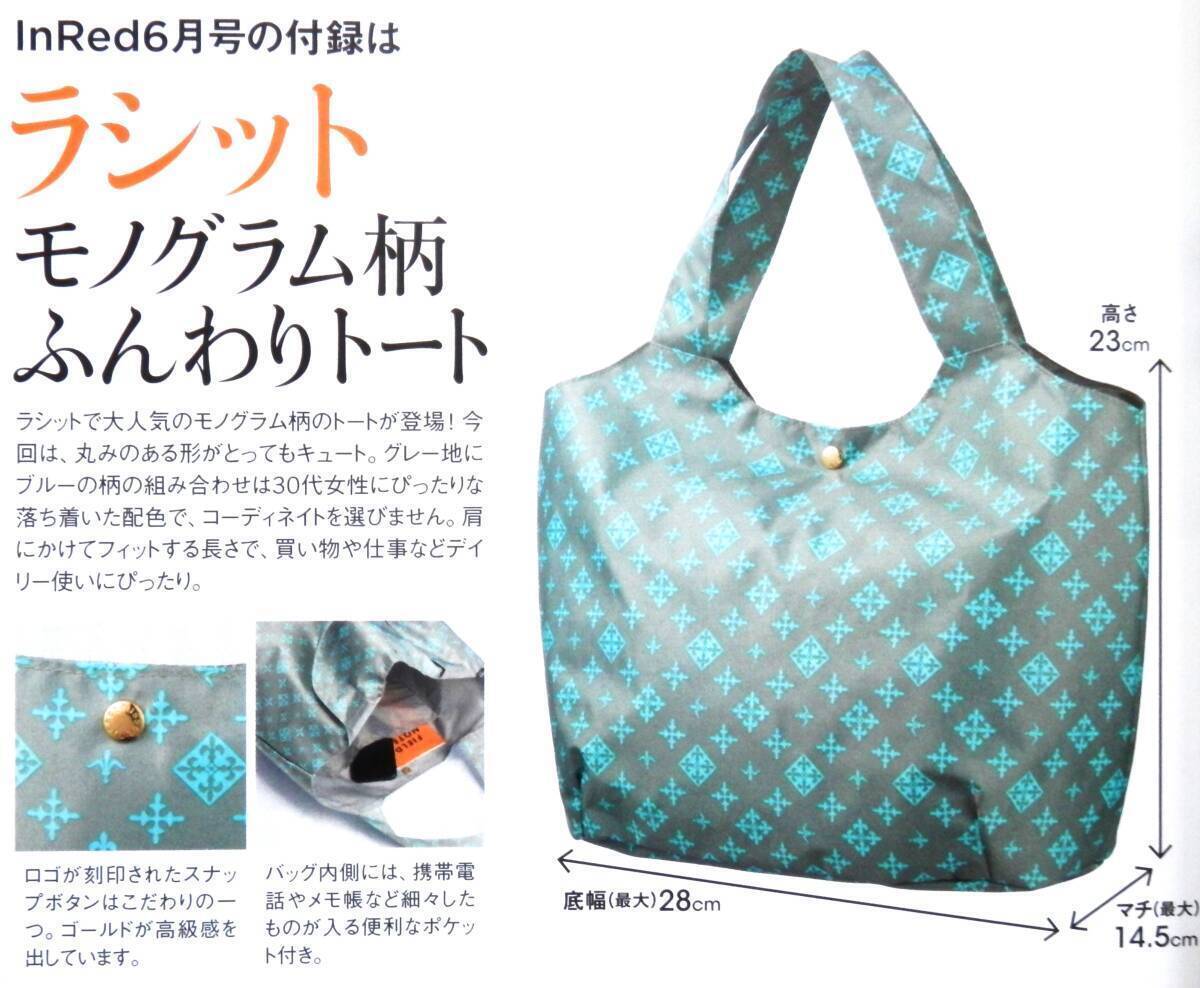 - 未開封品!!Inredインレッド特別付録 Russetラシット 「モノグラム柄ふんわりトートBag 大人シックなグレー地×ブルー」