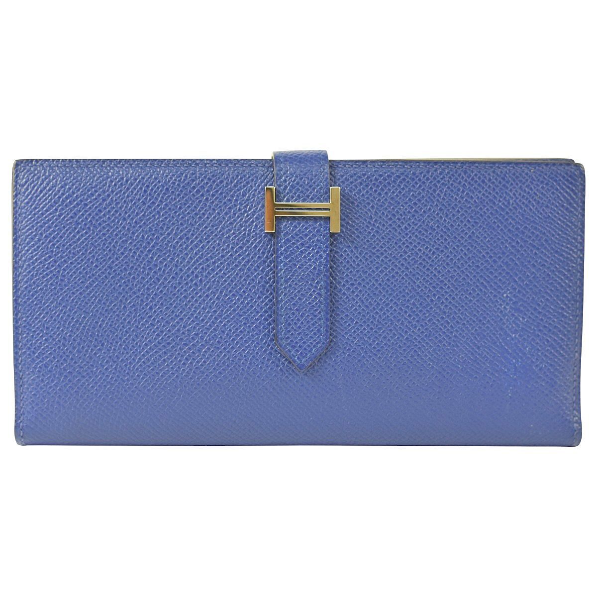 - エルメス ベアンスフレ マチあり 小銭入れ付き 長財布 エプソン S金具 ブルーエレクトリック 2015年 T刻印 HERMES