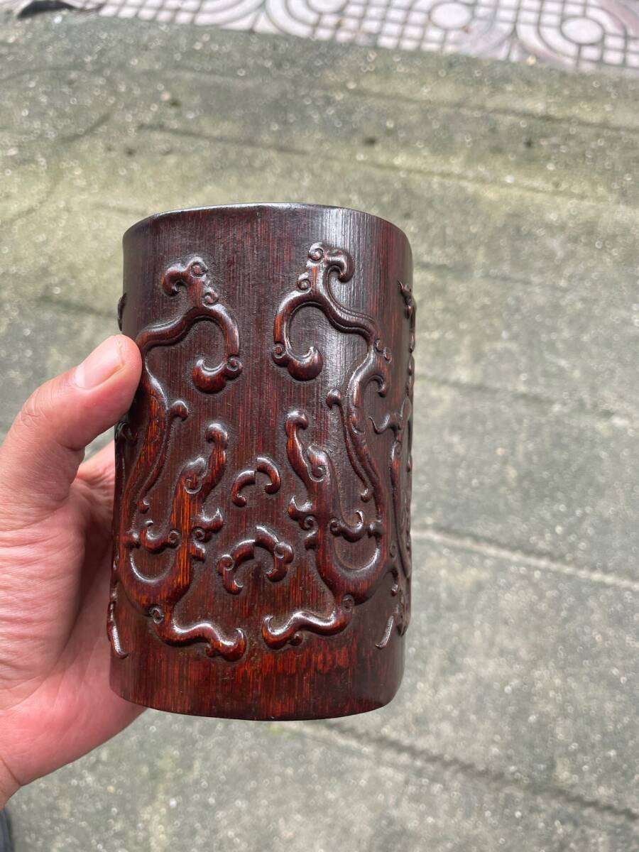 - 蔵友旧蔵出 竹材製 細密彫 古龍紋 方形筆筒 文房具 供養品 置物擺件 稀少珍藏品 古賞物 中国古玩 中国古美術品