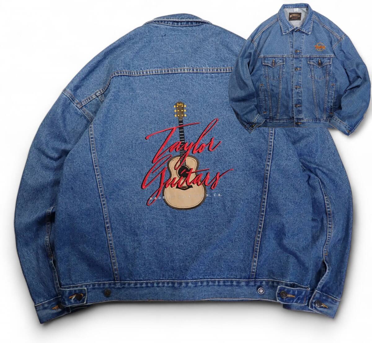 - 7081/良好 BUTTERFIELD デニム トラッカー ジャケット XXL●ギター刺繍 QUALITY Taylor GUITARS Gジャン ジージャン●洗濯プレス済●古着