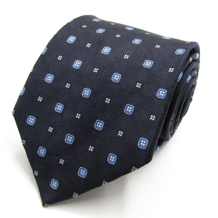 > ジェイプレス ブランドネクタイ 小紋柄 格子柄 シルク 日本製 PO メンズ ネイビー J.PRESS