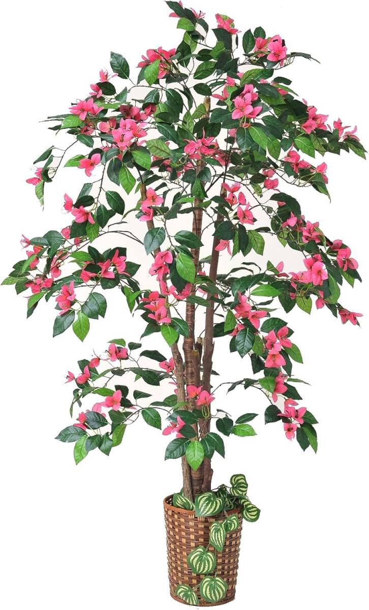 - ピンクの花がお出迎え ブーゲンビリア 人工観葉植物 フェイクグリーン 大型 竹カゴ付き 鉢付き