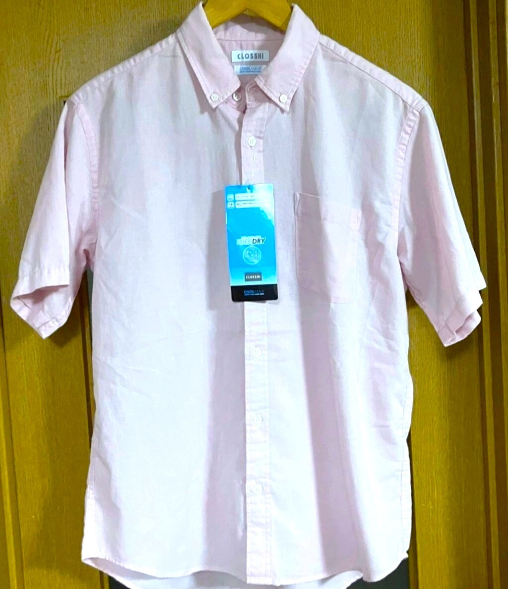 - 新品 タグ付き シャツ 半袖 メンズL 綿52% ポリエステル48% ピンク 桃色