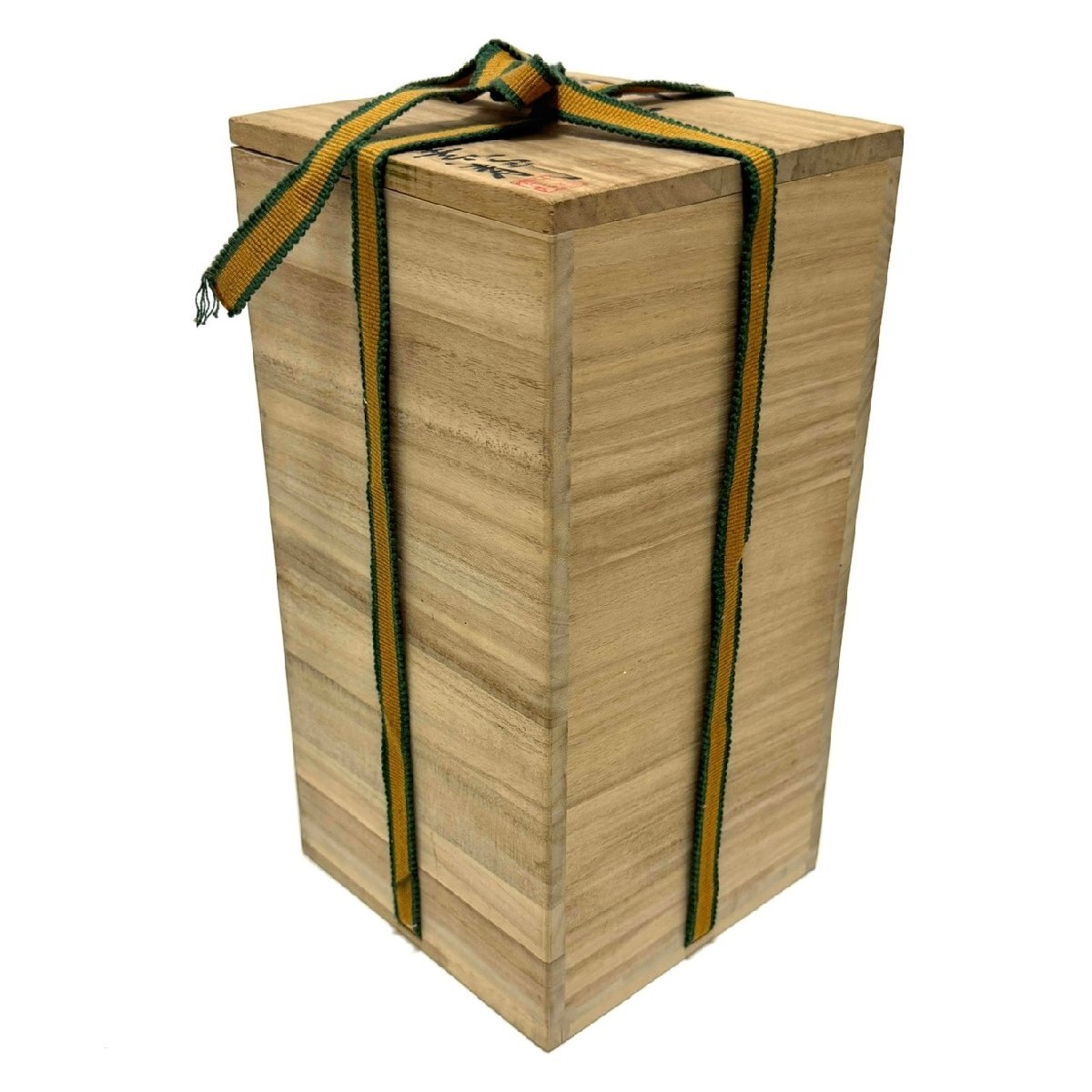 - 空箱 木箱 中古 備前 共箱 花生 骨董品 ヴィンテージ レトロ インテリア 書道文字 筆文字 15.3cmx15.3cmx29.5cm 箱のみ