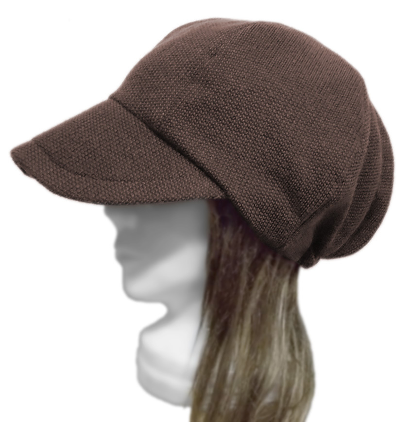 > ハンドメイド◆つば広キャスケット◆変り編コットンスウェットニット/ブラウン×ダークブラウン ◇紫外線対策・ゆったりサイズ・小顔効果