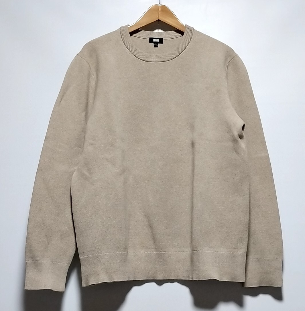 > ほぼ未使用 ユニクロ 2022年秋冬 ウォッシャブルストレッチミラノリブクルーネックセーター ニット トレーナー ブルゾン カーキ メンズXL