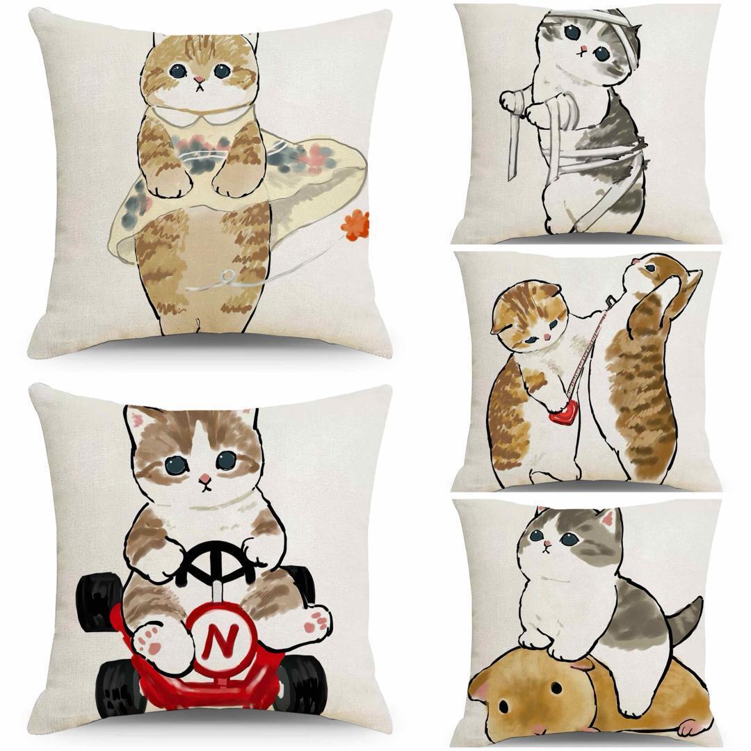 - 5枚セット価格 クッションカバー ねこ 送料無料 新品