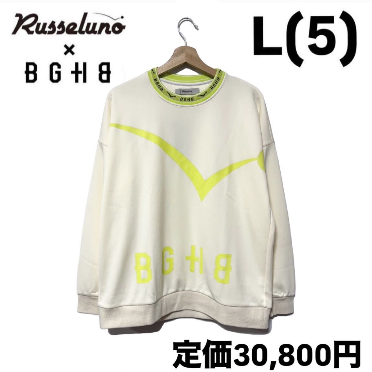 - 新品 バガーチ ラッセルノ フロントロゴ スウェット ホワイト イエロー L 5 NX-1910601 BAGARCH ゴルフウェア ストリートウェア