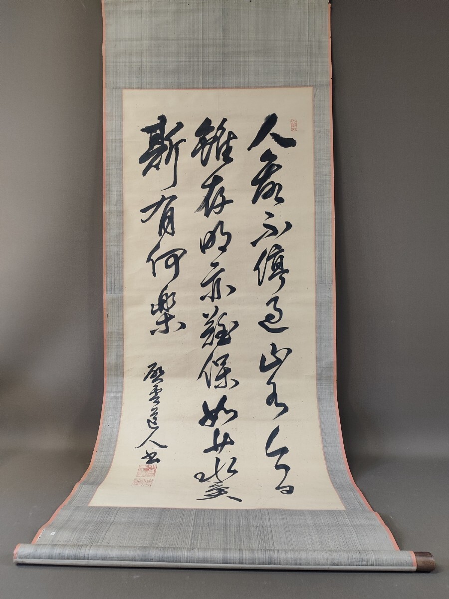 - k127 【作者不詳】三行書 掛け軸 書 書画 書道 紙本 古美術 骨董品 時代物 模写