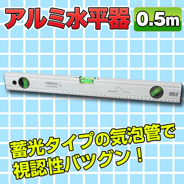- 【水平器】アルミ/50cm/マグネット/水準器/磁石/蛍光