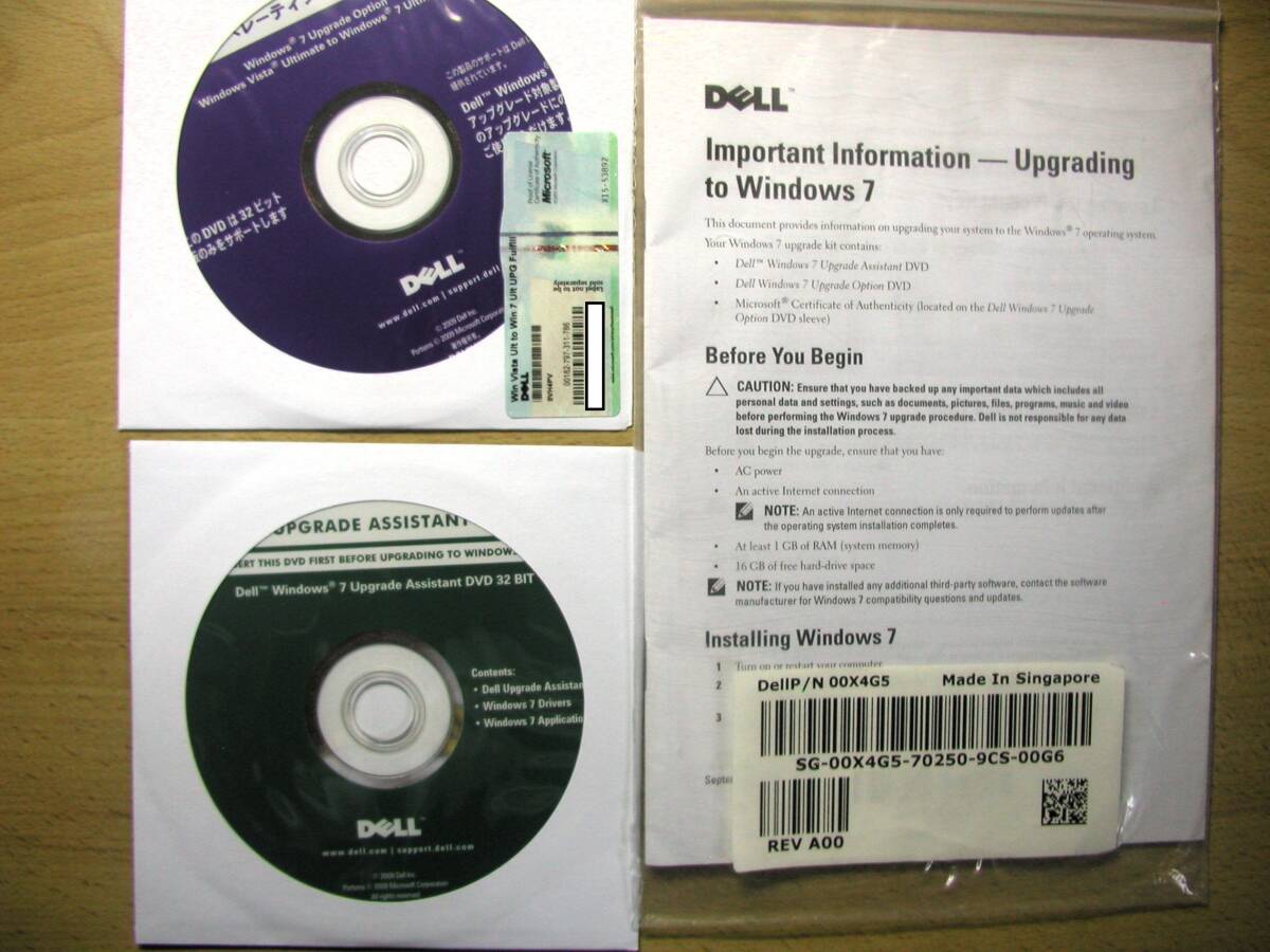 > ★☆★ DELL Windows7 アップグレード 取説付 ドライバー アプリケーション DVDメディア 2枚 プロダクトキー 32bit ★☆★