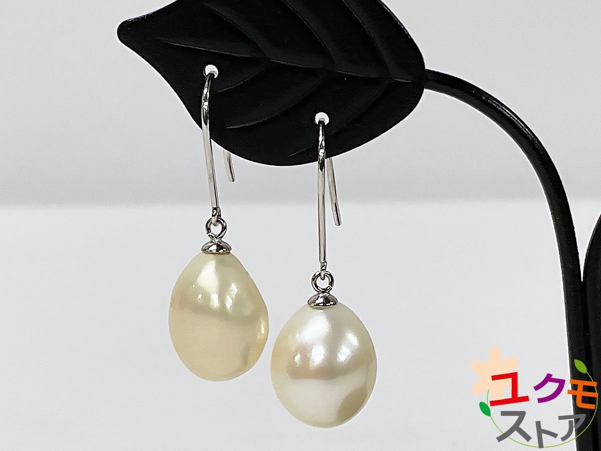 【送料無料】 美品 K14WG パール スイング ピアス フックピアス ホワイトゴールド 真珠 WG拍卖