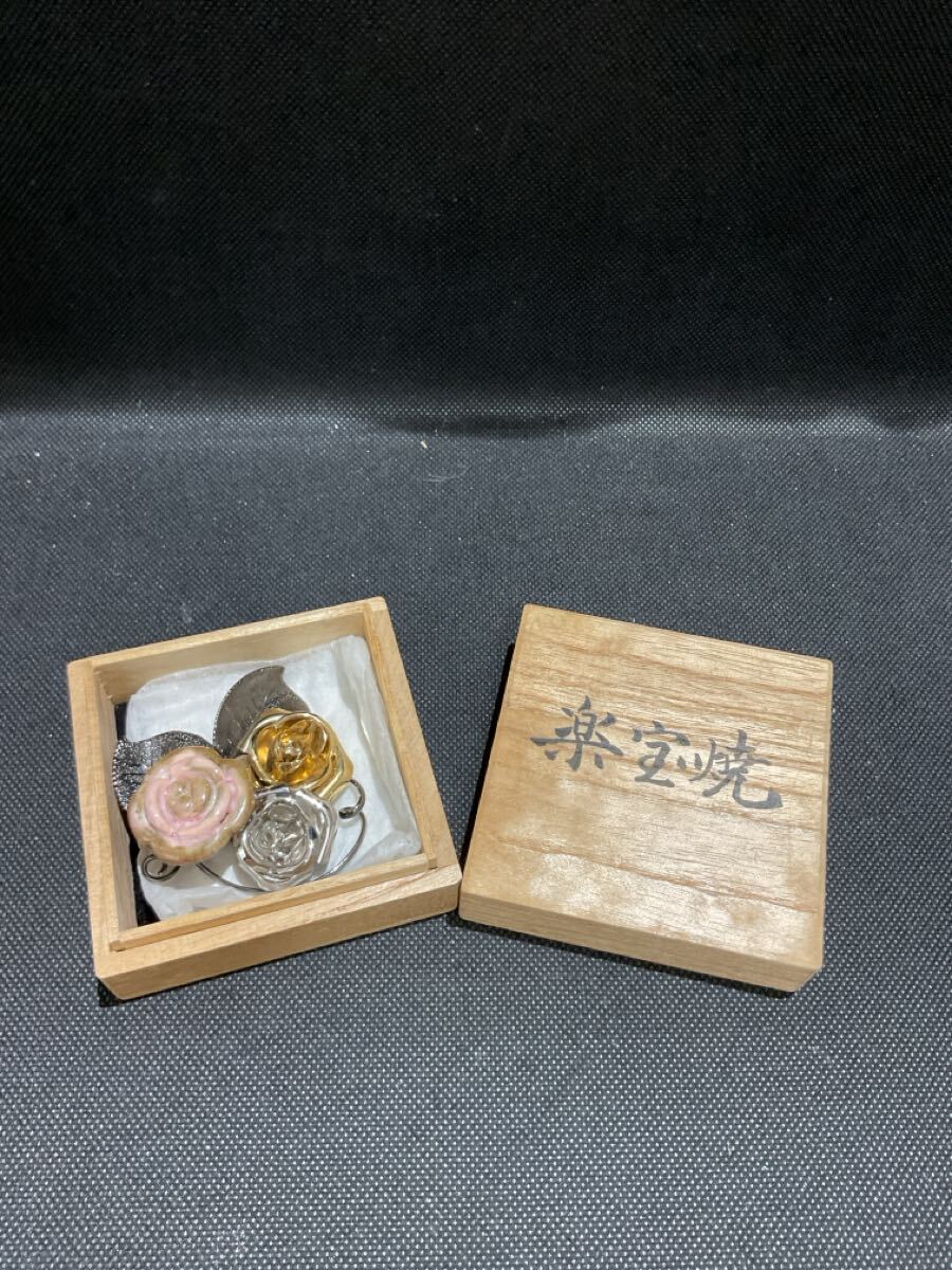 - 【P-2821】楽宝焼 ブローチ アンティーク コレクション バラ 焼き物 ビンテージ
