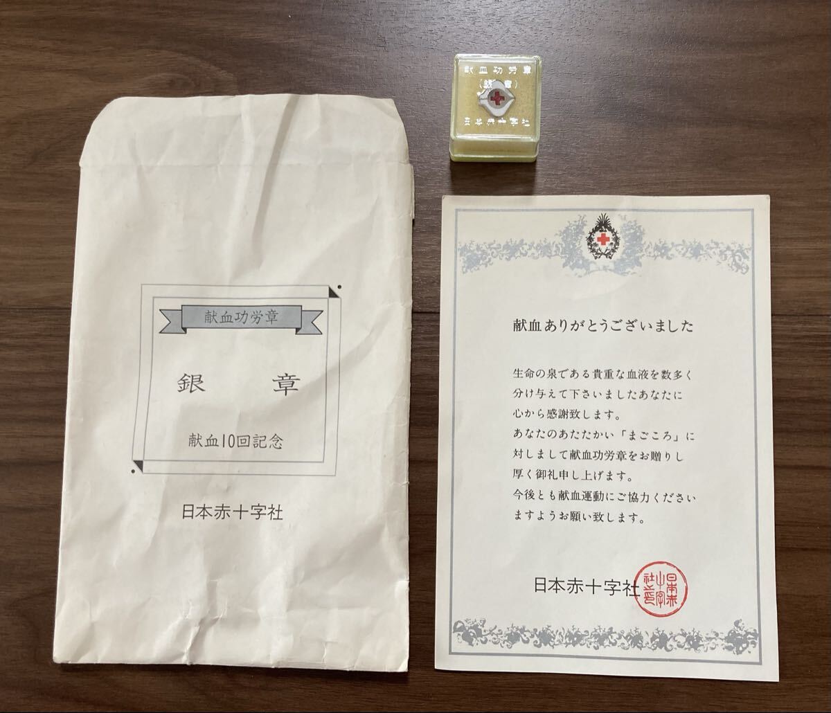 - 献血 銀章 献血功労章 献血10回記念 日本赤十字
