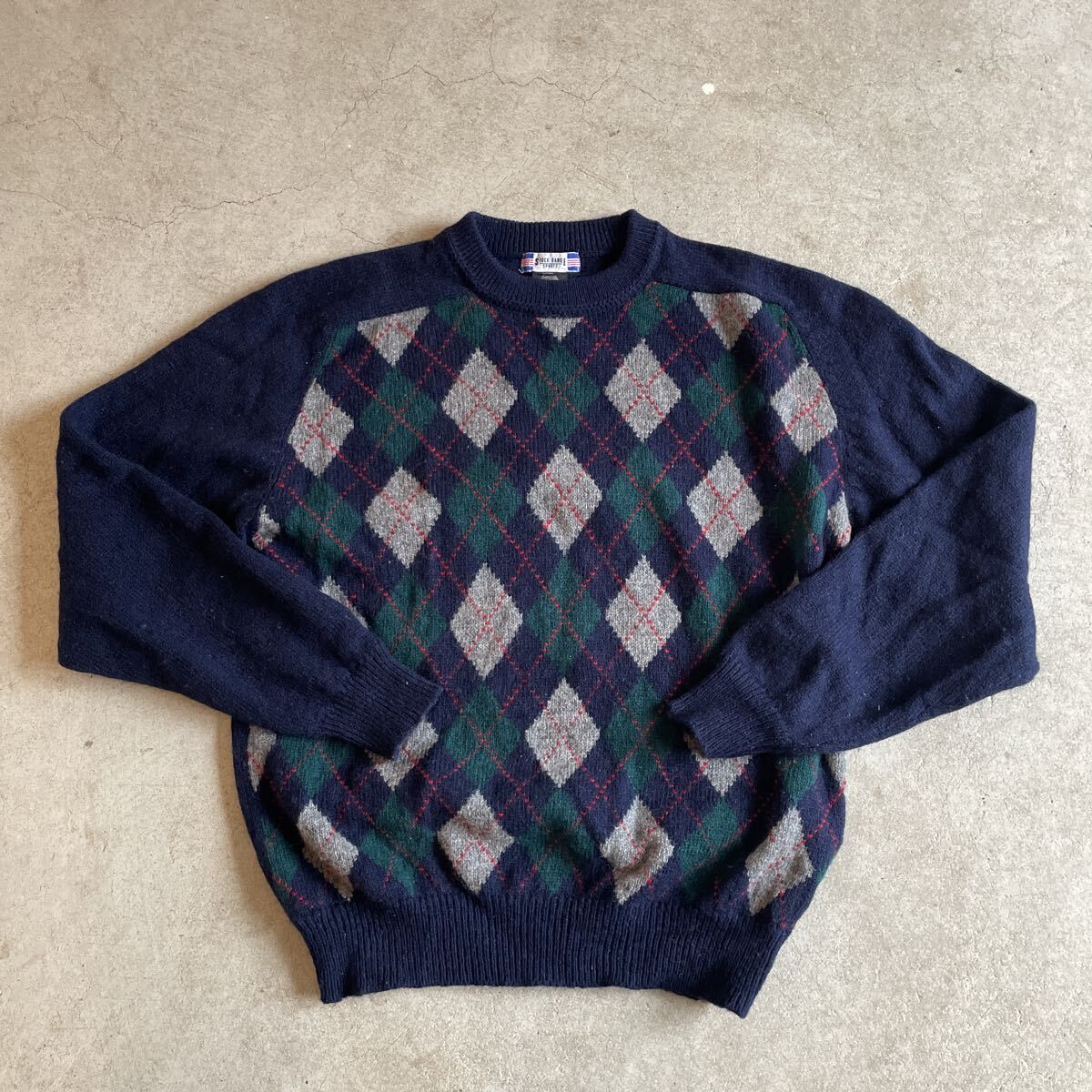 > ビンテージ アーガイル柄 ラグラン ニット セーター 5 ヴィンテージ クルーネック ネイビー紺色 メンズ L プレッピー スクール