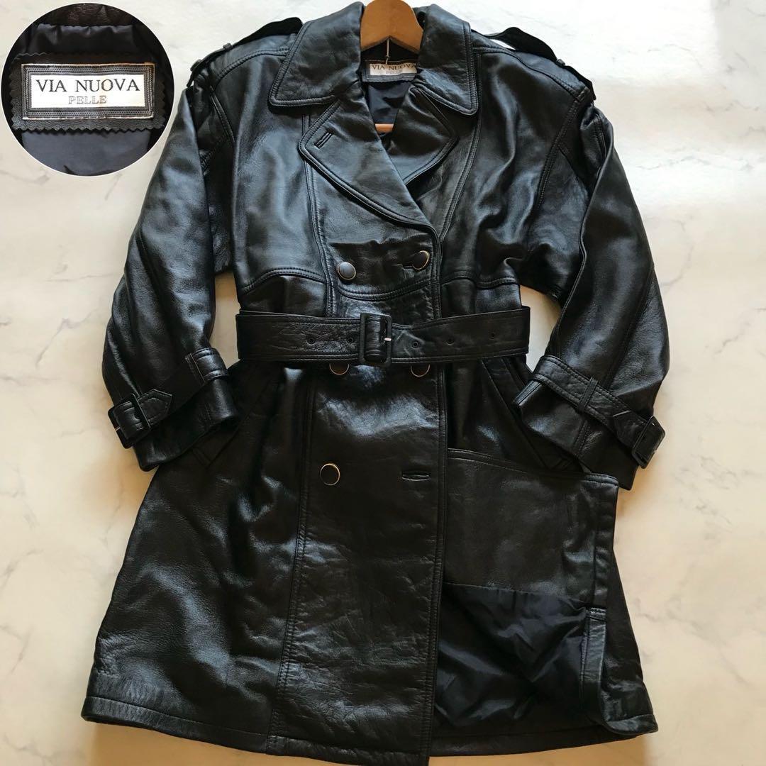 > 定価10万越!!/美品/XL相当●高級レザーコート ジャケット ライダース ベルテッド 極上羊革 ラムスキン ダブルブレスト 黒 定価10万 色気