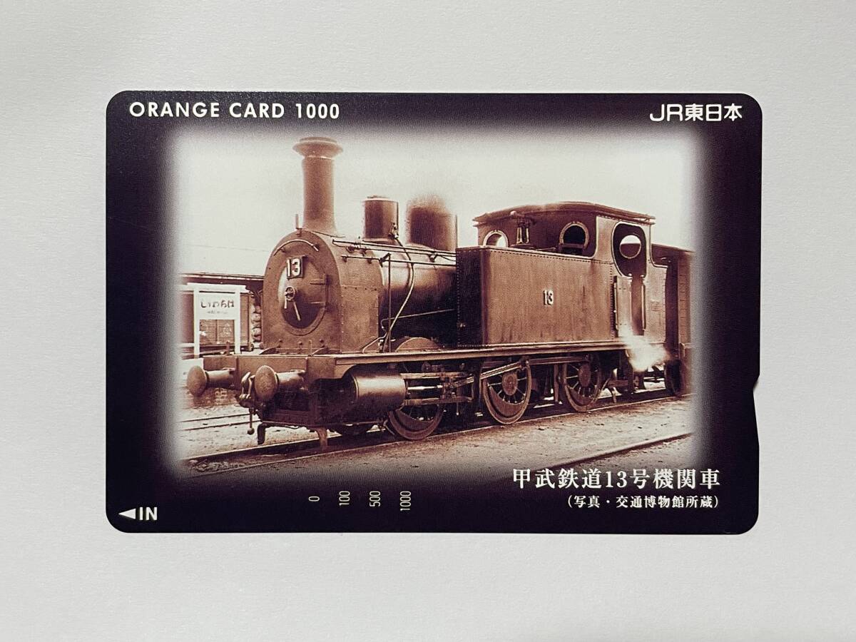 > オレンジカード JR東日本 中央線開業110周年 新宿-八王子 甲武鉄道 明治22年 鉄道国有法 13号機関車 1000円分