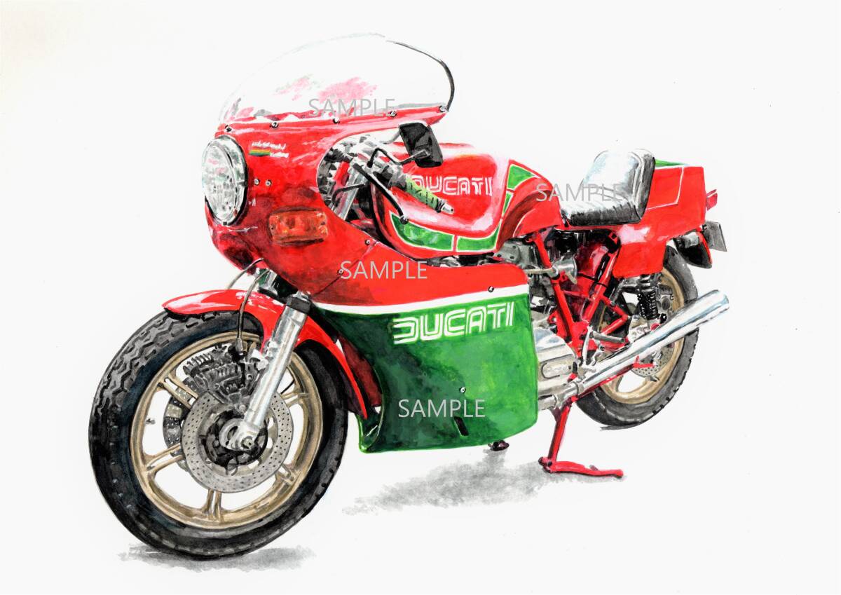 - A4プリントです ドゥカティ マイクヘイルウッドレプリカ 水彩画 バイクイラスト