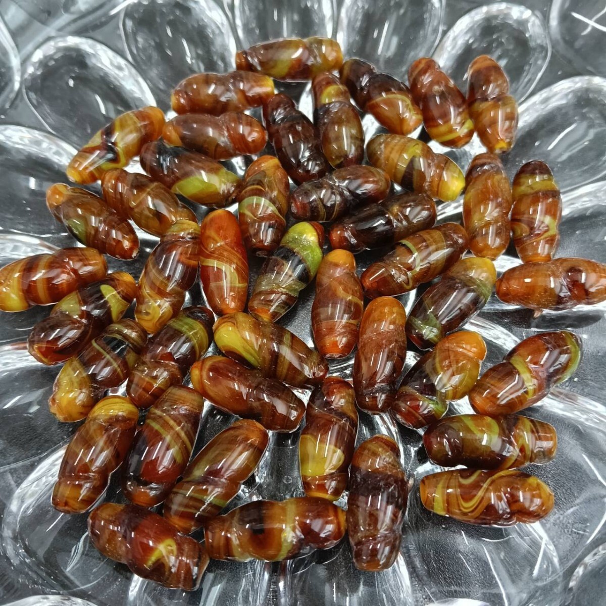 > L464☆未使用 大量 チェコ ガラスビーズ 89g 8×19mm ツイスト 米型 ブラウン 茶色 大粒 ヴィンテージ パーツ アクセ ネックレス B-4