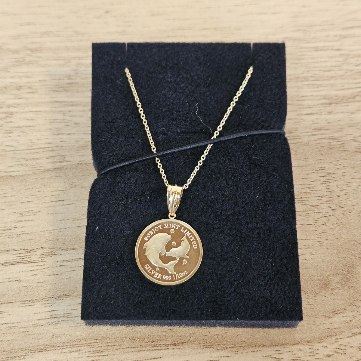 - 未使用 ゴールドカラー 純銀 イルカ ドルフィン ネックレス 999 シルバー コイン 925