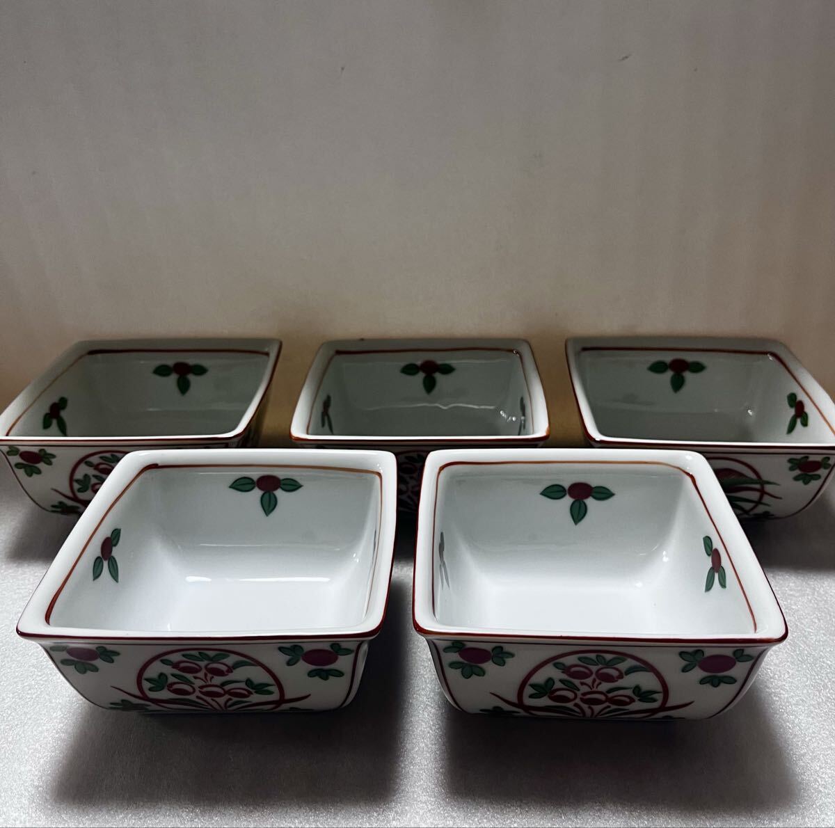 - 未使用 新品 たち吉 橘吉 小鉢 5客 赤絵花鳥 小鉢揃 角鉢 和食器 色絵 角小鉢 赤絵花鳥 角鉢 和食器 5個 セット