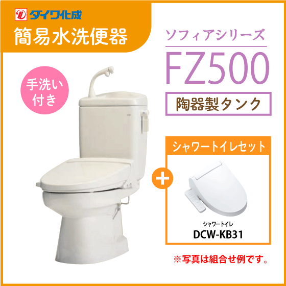 - 簡易水洗便器 簡易水洗トイレ クリーンフラッシュ「ソフィアシリーズ」 FZ500-H00(手洗付)・シャワートイレセット ダイワ化成