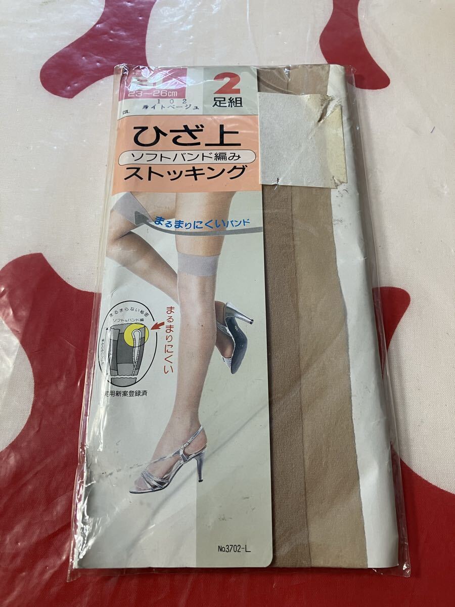 - 関東ナイロン ひざ上 ストッキング BL 2足組 ライトベージュ 23-26cm オーバーニー over knee stocking ソフトバンド編み レオナ66