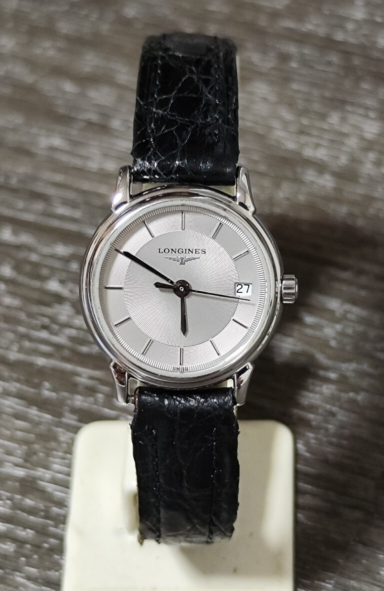 - 稼働品 ロンジンL4.177.4 レディース腕時計 シルバー文字盤 三針デイト 純正品革ベルト尾錠