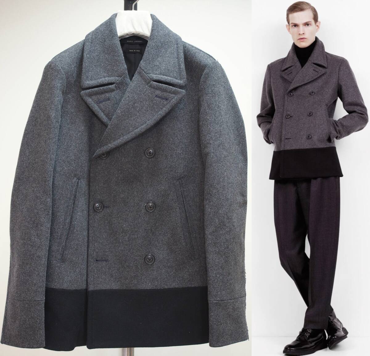 > 美品 MARC JACOBS マークジェイコブス 10AWバイカラーメルトンピーコート46灰×黒 Italy製