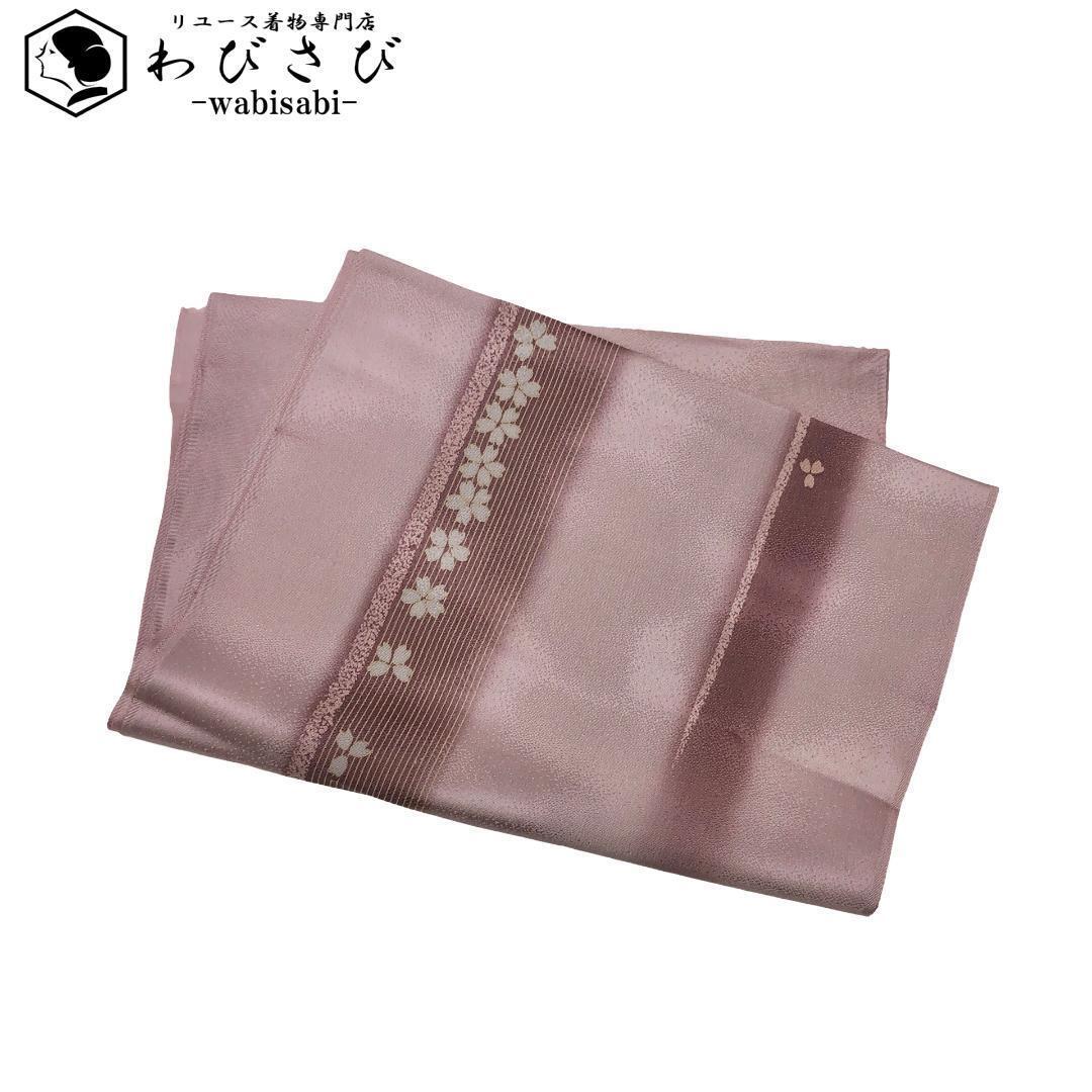 - 和装小物 帯揚げ 正絹 綸子 縦縞模様に花柄 紫鼠色 C-6521 着物 きもの kimono 和服 和装 中古 リサイクル着物 【送料無料】