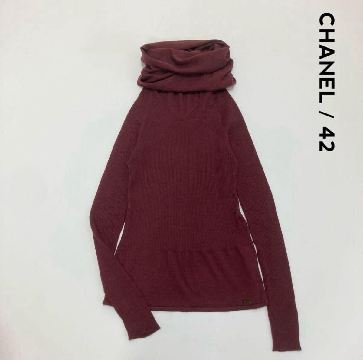 > CHANEL シャネル☆カシミヤシルクタートルネックニット 裾フリル ココマーク 42 セーター バーガンディ