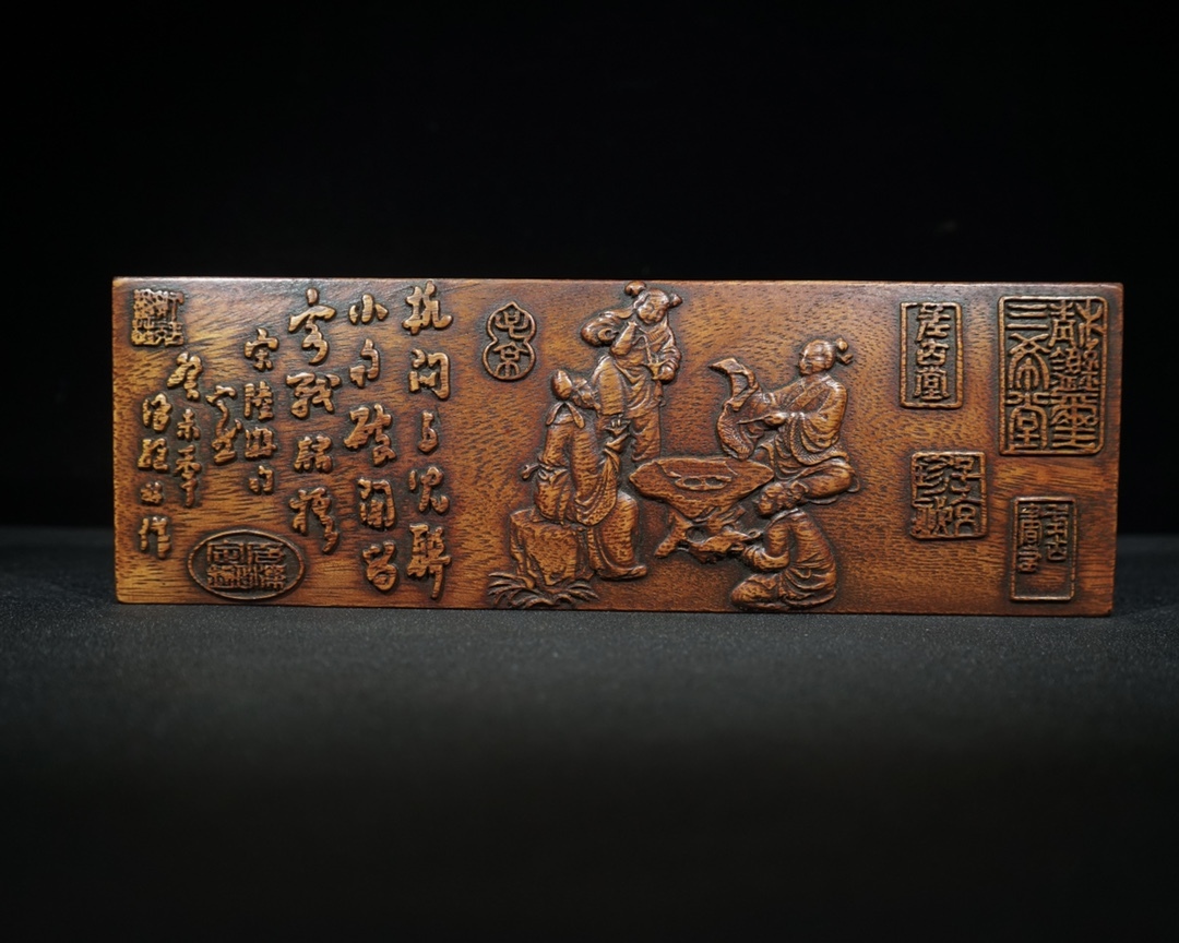 - 『館蔵珍品 花梨木 細密彫 毛筆盒 置物 賞物』稀少珍蔵品 古賞物 貴重物品 収蔵品 中国古美術 時代物 古董品