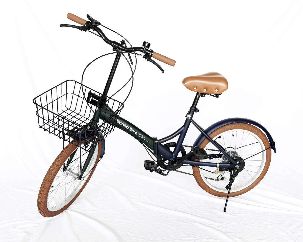 - お洒落な折りたたみ自転車 20インチ 6段変速 カゴ・ライト・錠付 BONITA TUDAPOP20 通勤 通学 街乗り 青/緑
