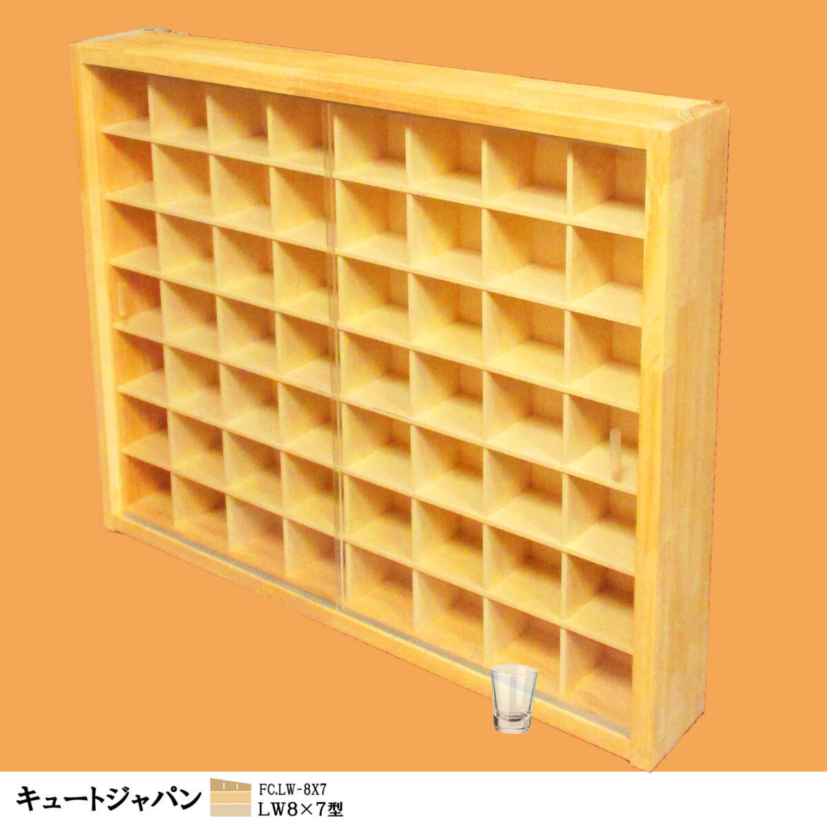 - 【送料無料】ショットグラス 酒器 酒杯 コレクション収納 ディスプレイ インテリア 展示 棚 8×7マス アクリル障子付 日本製