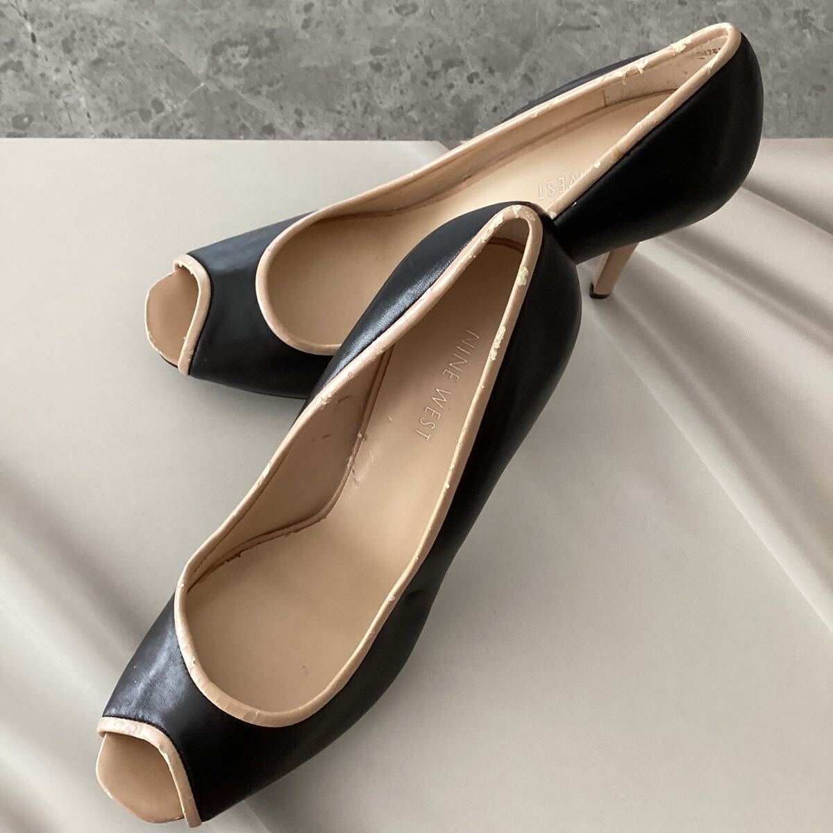 - 訳あり NINE WEST 黒 オープントゥ ハイヒール