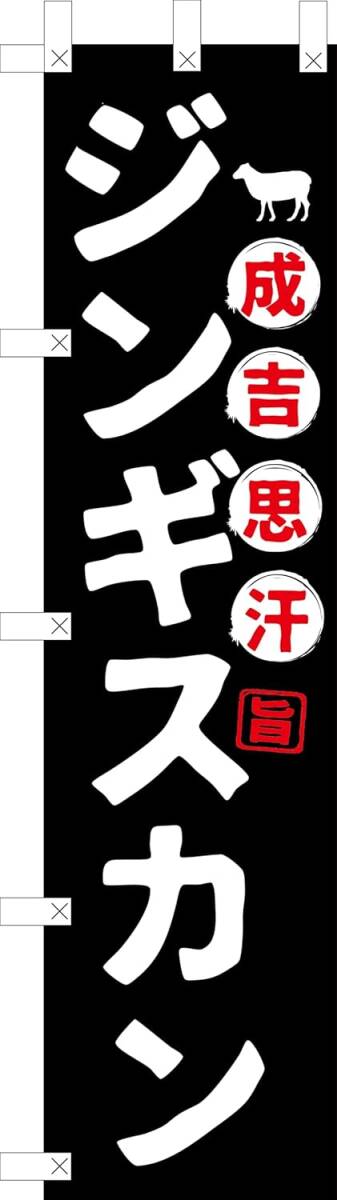 > のぼり旗「ジンギスカン のぼり ジンギスカン 幟旗 成吉思汗 スリム ラム肉 マトン 羊料理 焼肉 北海道名物 北海道焼肉 黒」送料360円