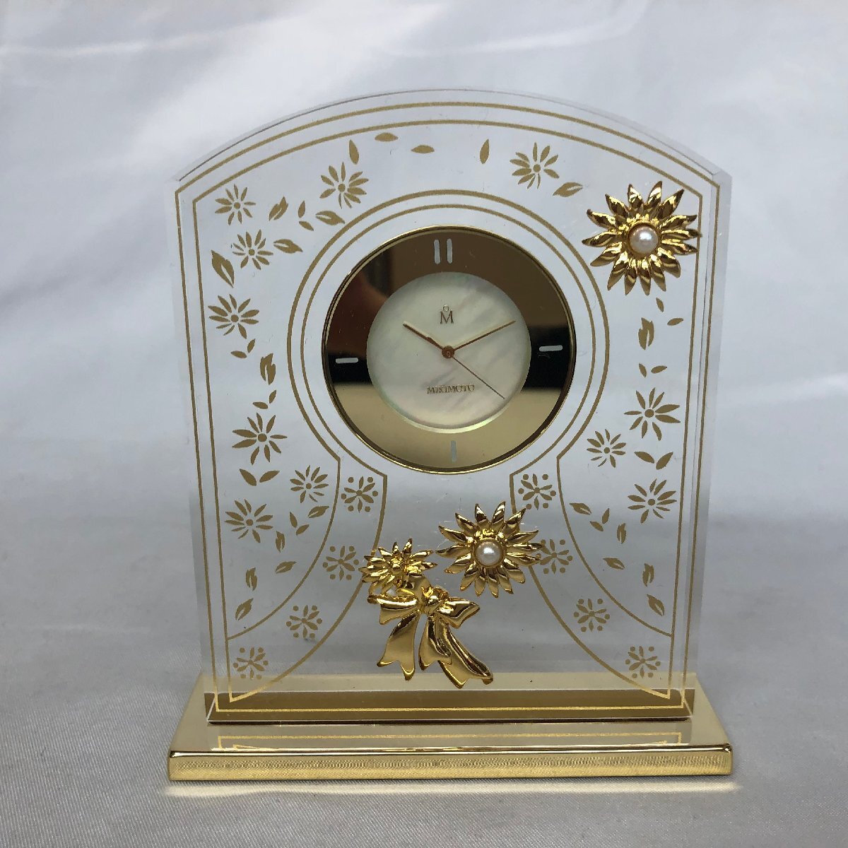 - MIKIMOTO(ミキモト) 置き時計 ゴールド 花柄 パール装飾 箱付き ※電池カバーのゴム劣化の為、付属しません (店番:063102)