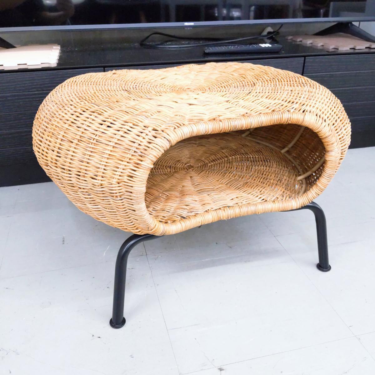 > IKEA イケア ガムフルト ラタン 収納付きオットマン サイドテーブル〇YR-53965〇【中古品】