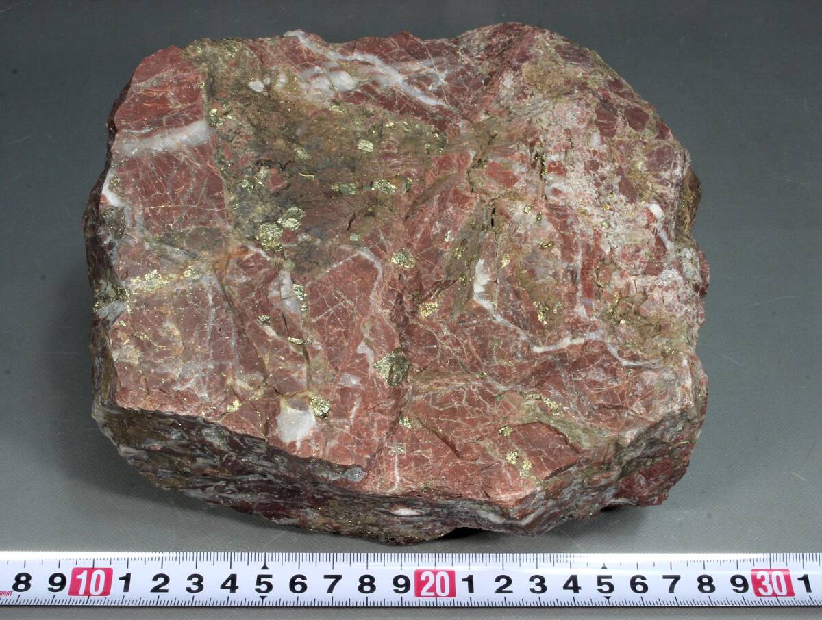 - 青森県西目屋村 尾太鉱山 赤色 チャート(角岩)黄銅鉱 黄鉄鉱 約4.8kg 鉱石 鉱物 標本
