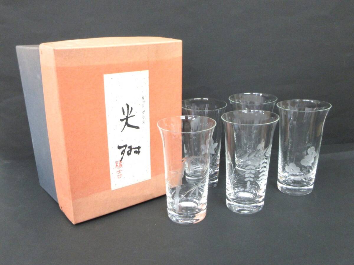 > 【9-192】たち吉 光琳 一口ビール グラス セット 5客 カットグラス ビアグラス 酒器 ガラス 箱入 自宅保管品