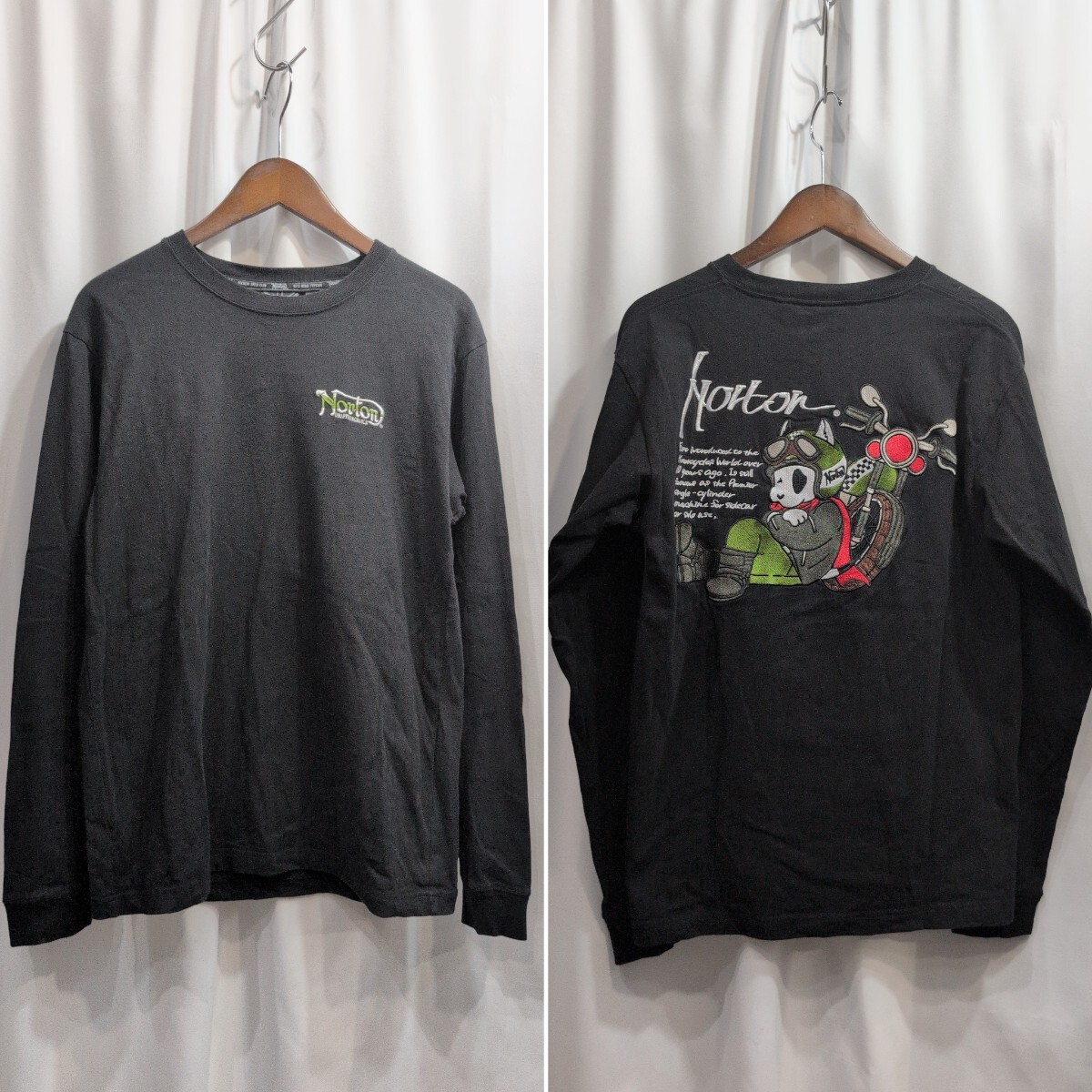> Norton ノートン 刺繍 長袖Tシャツ M メンズ 長袖シャツ ロンT ワッペン コットン 黒/バンソン/ショット/フラットヘッド