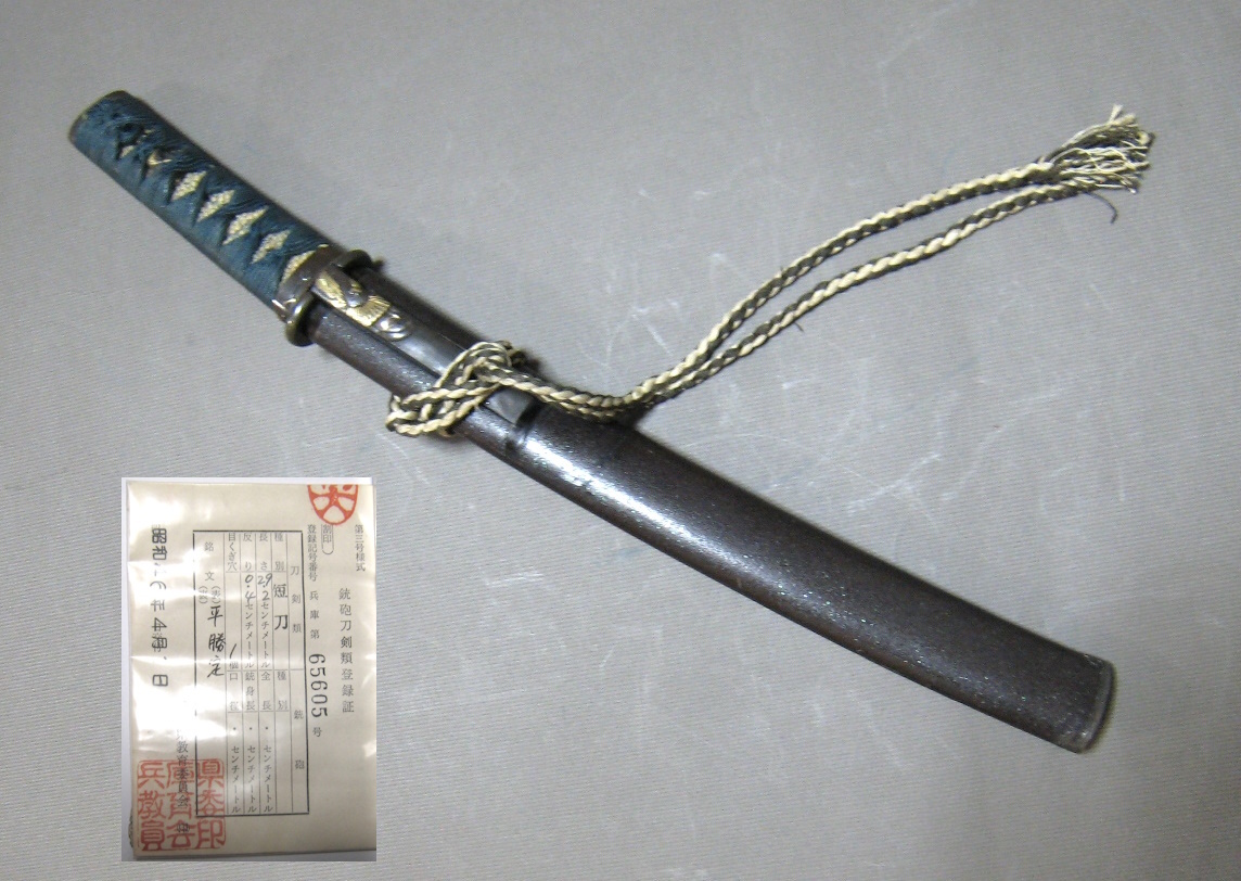 - 日本刀 短刀 銘有 平勝定 29.2cm 小柄 平信秀 刀剣 銃砲刀剣類登録証 委託品
