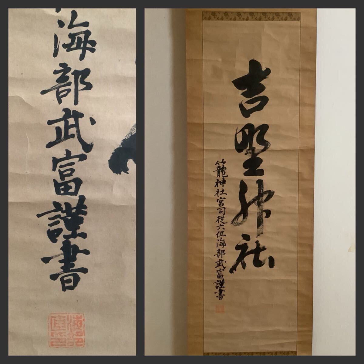 - 【模写】掛軸Sep7104[海部武富 吉野神社 御神號]紙本 書いたもの/神仏画 神道神教 籠神社宮司 一行書 墨蹟 古書
