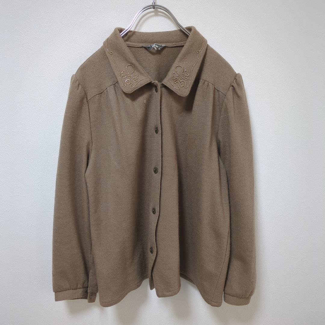 - New Look(11)襟付きブラウス*襟刺繍*ウール100%*レトロ*長袖*茶