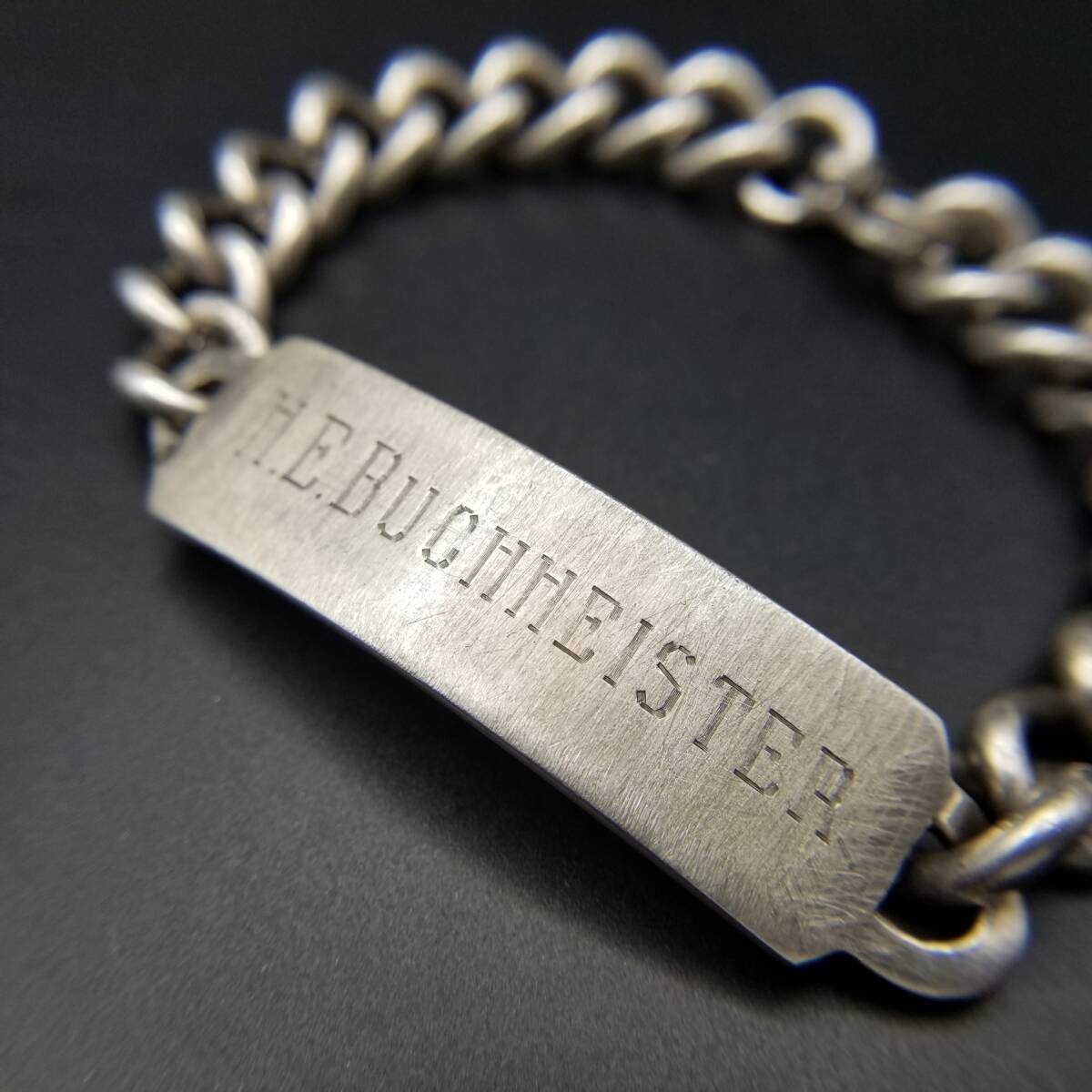 > WWII期 Korff & Son,S SKS社製 IDタグ 925 シルバー ヴィンテージ ブレスレット 銀 マンテルチェーン ネーム彫金 H.E. Buchheister Y24-U