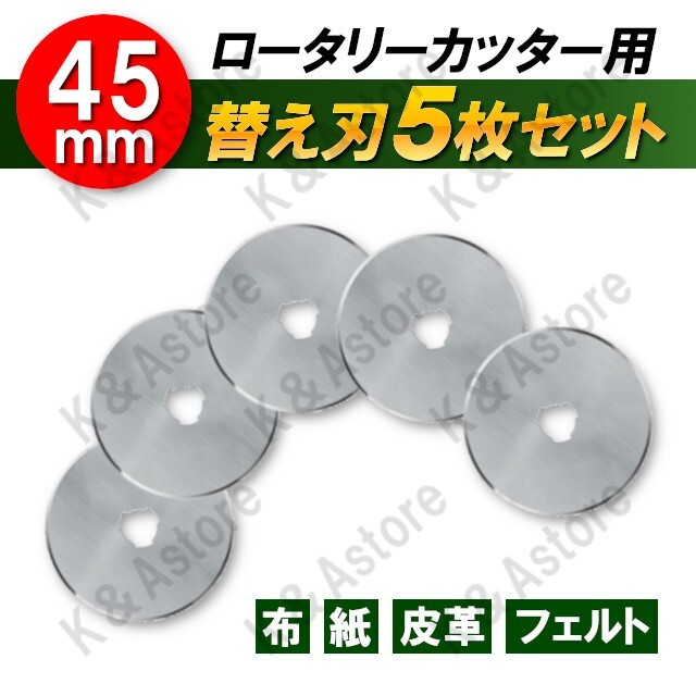 > 【匿名配送】替え刃 45mm ロータリーカッター用 ロールカッター ローラー 布 紙 皮革 フェルト 手芸 ハンドメイド レザークラフト 5枚