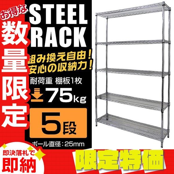> 【限定セール】新品 スチールラック 5段 幅120×奥行30×高さ180cm メタル 収納 ラック スチール シェルフ 本棚 工具 雑貨 おもちゃ