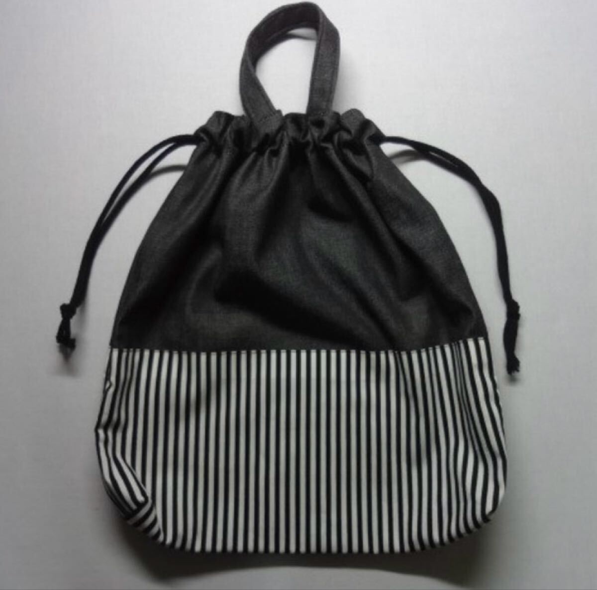 - ハンドメイド 体操服入れ【黒デニム黒白ストライプ】