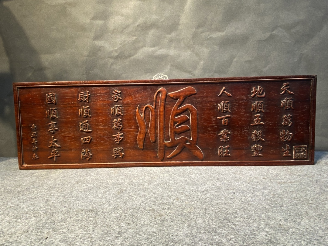 - 早期收集 旧藏 古紫檀木彫 順 壁挂 墻挂 中堂挂屏 賞物 極細工 古賞物 東洋彫刻 中国唐物 時代物 骨董 中国古美術